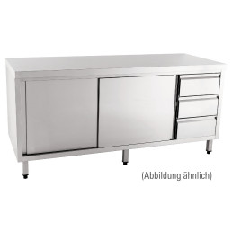 Arbeitsschrank mit Schiebetüren ohne Aufkantung Schubladen links